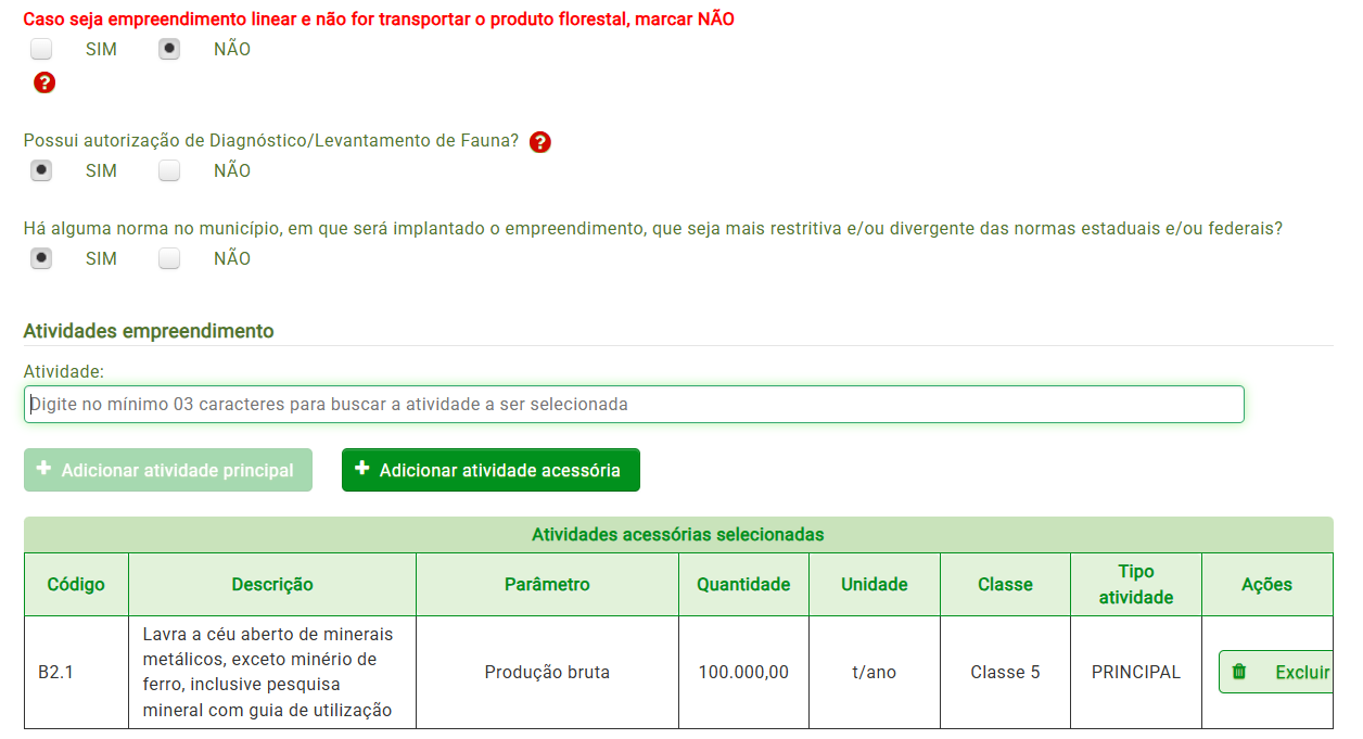 Logo na abertura do processo, é indispensável que todas as tipologias da licença sejam corretamente indicadas, incluindo atividades primárias e secundárias. Um erro nesta etapa pode resultar no indeferimento do processo, sem direito à correção nas pendências e com perda da taxa de licenciamento.